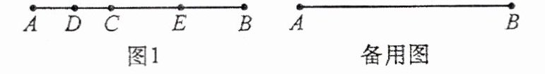 1. 如图 1,已知线段 $ AB = 24 $,C 为线段 AB 上的一点,D,E 分别是 AC 和 BC 的中点.