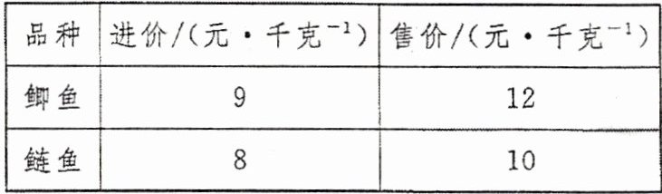11. 某水产批发市场购进鲫鱼和鲢鱼共 $1000$ 千克,这两种鱼的进价、售价如下表: