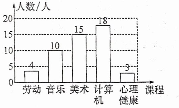 4. 如图,这是某班同学对“你最喜欢的课程”投票的统计图,根据条形统计图可得出该班最喜欢计算机课程的人数占全班人数的百分比是