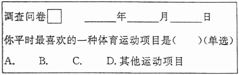 2. 某班级组织活动,为了解同学们喜爱的体育运动项目,设计了如图所示的尚不完整的调查问卷: