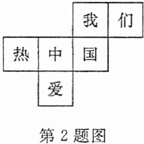 2. (2024·达州)如图,正方体的表面展开图上写有“我们热爱中国”六个字,还原成正方体后,“我”所在面的相对面上的字是 (