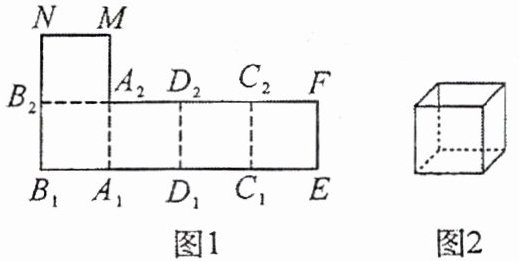 5. 图1是由五个边长都是1的正方形纸片拼接而成的,现将图1沿虚线折成一个无盖的正方体纸盒(图2)后,与线段FC₂重合的线段是