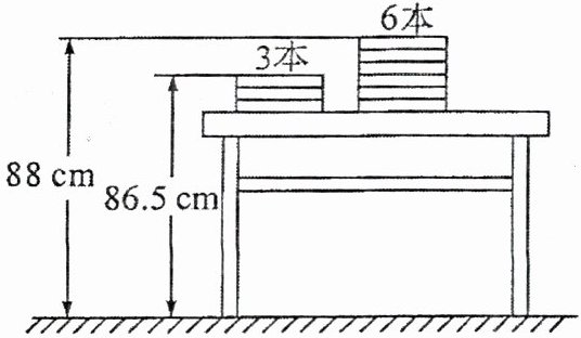 cm.(2) 若有$x$本上述规格的课本整齐地叠放在讲台上,则这一摞课本的顶部距离地面的高度为