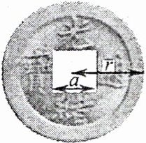 7. 铜钱是我国的早期货币,外圆内方的构造彰显了数学之美.已知铜钱外部的圆半径为$r$,内部的正方形边长为$a$,则铜钱阴影部分的面积用代数式表示为