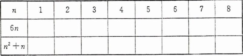 (3)当n=10时,6n=60,$n^{2}+n=110$,所以$n^{2}+n$的值先超过100。