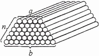 8. 人们常用公式 $ \frac { n ( a + b ) } { 2 } $ 来计算堆成如图所示形状的钢管的根数,其中 $ a $ 是顶层的根数,$ b $ 是底层的根数,$ n $ 是层数。如果一堆钢管有 $ 6 $ 层,顶层、底层的钢管数量分别为 $ 5 $ 根、$ 10 $ 根,求这堆钢管的根数。