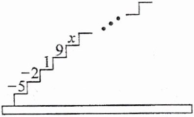13. 如图,阶梯图的每个台阶上都标着一个数,从下到上的第1个台阶至第4个台阶上依次标着$-5$,$-2$,$1$,$9$,且任意相邻四个台阶上数的和都相等。
