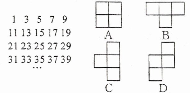 10. 将连续的奇数$1$,$3$,$5$,$7$,$9$,…排成如图所示的数表,小明在数表上圈出了$a$,$b$,$c$,$d$四个数,并求出了它们的和为234。则这4个数在数表中的排列位置可能是(