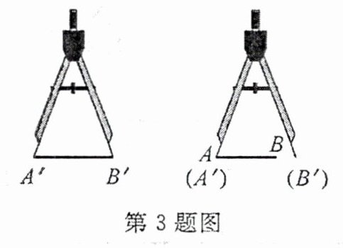 3. 如图,用圆规比较两条线段 $ A'B' $ 和 $ AB $ 的长短,下列结论正确的是(