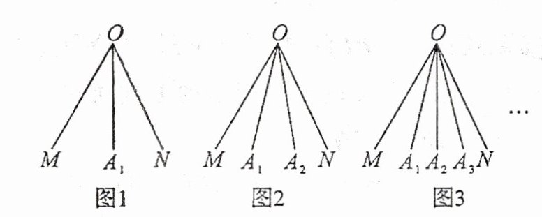 个角.(3)如图3,$\angle MON$内部有三条射线$OA_1$,$OA_2$,$OA_3$,则图中共有