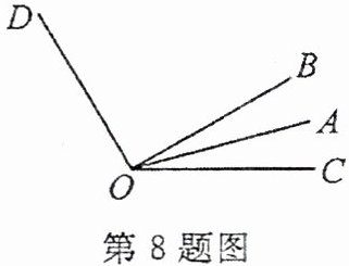 8. 如图,∠COD = $120^{\circ}$,∠BOD = $90^{\circ}$,OA 平分∠BOC,求∠AOD 的度数.