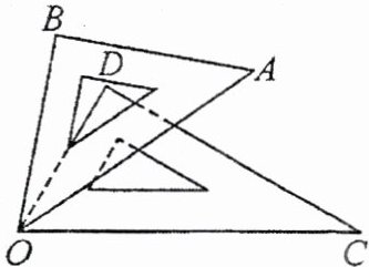 9. (2024·合肥蜀山区期末) 已知一副直角三角板按如图所示的方式放置,其中 $ \angle COD = 60° $,$ \angle AOB = 45° $,经测量 $ \angle BOC = 80° $,则 $ \angle AOD $ 度数为(