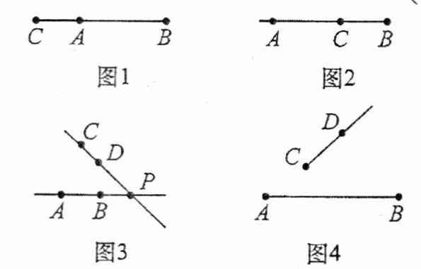 D.如图 4,射线 $ CD $ 和线段 $ AB $ 没有交点