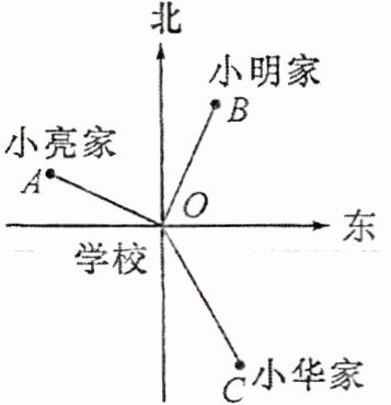 12. 如图,点 $ A $,$ B $,$ C $,$ O $ 分别表示小亮家、小明家、小华家、学校的位置. 点 $ A $ 位于点 $ O $ 的北偏西 $ 65° $,点 $ B $ 位于点 $ O $ 的北偏东 $ 25° $.