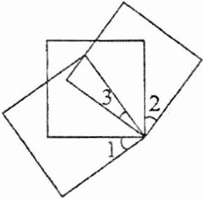 11. 如图所示,将三个大小相同的正方形的一个顶点重合放置,则 $ \angle 1 $,$ \angle 2 $,$ \angle 3 $ 三个角的数量关系为(