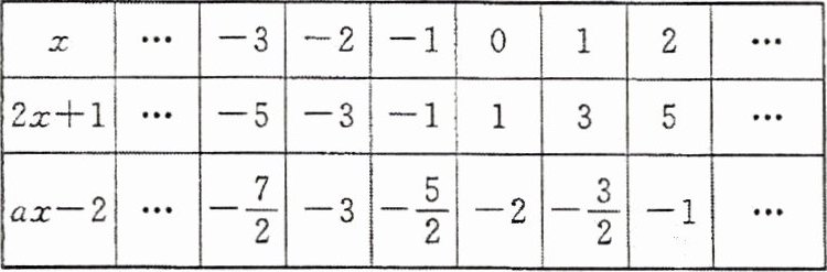 14. 观察下表,写出关于$x$的方程$2x + 1 = ax - 2$的解是