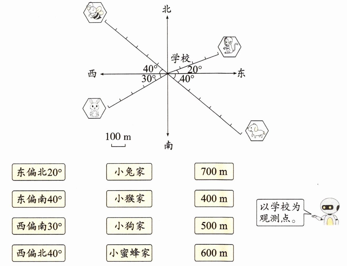 (2)从奇奇家先向西偏北40°方向走1500 m到学校,再向西偏北20°方向走750 m到书店。