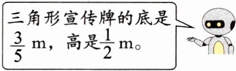 三角形宣传牌的底是$\frac{3}{5}$m,高是$\frac{1}{2}$m。
