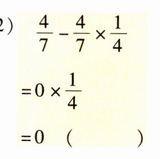 (2)× $\frac{4}{7}-\frac{4}{7}×\frac{1}{4}$ $=\frac{4}{7}-\frac{1}{7}$ $=\frac{3}{7}$
