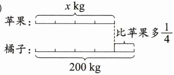 (1)解:$(1+\frac{1}{4})x=200$