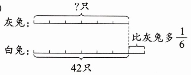 白兔:42只 比灰兔多$\frac{1}{6}$