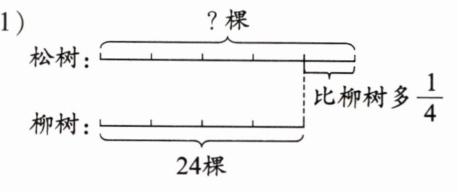 柳树:24棵 比柳树多$\frac{1}{4}$