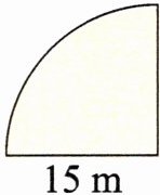 5. 在比赛中,铅球投掷的落点区域是一个$\frac{1}{4}$圆。如图,某运动员的最远投掷距离为15 m,铅球可能的落点区域的面积是多少?
