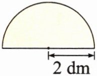5. 有一块半圆形的纸板(如图),它的周长是( )dm,面积是$( )dm^2。$