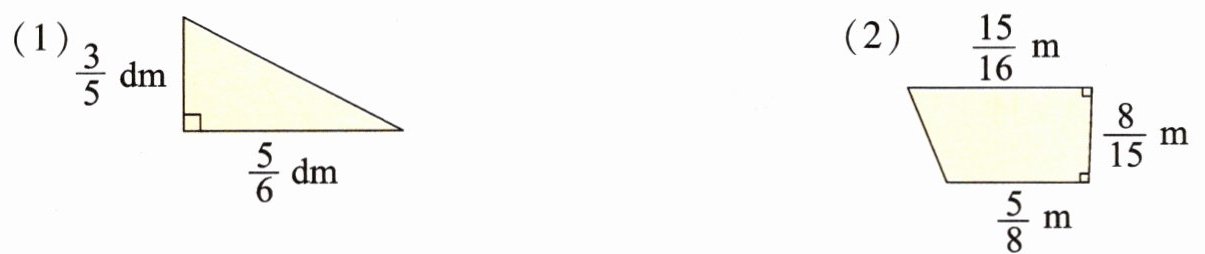 (1)$\frac{5}{6}$×$\frac{3}{5}$×$\frac{1}{2}$=$\frac{1}{4}$(dm²)