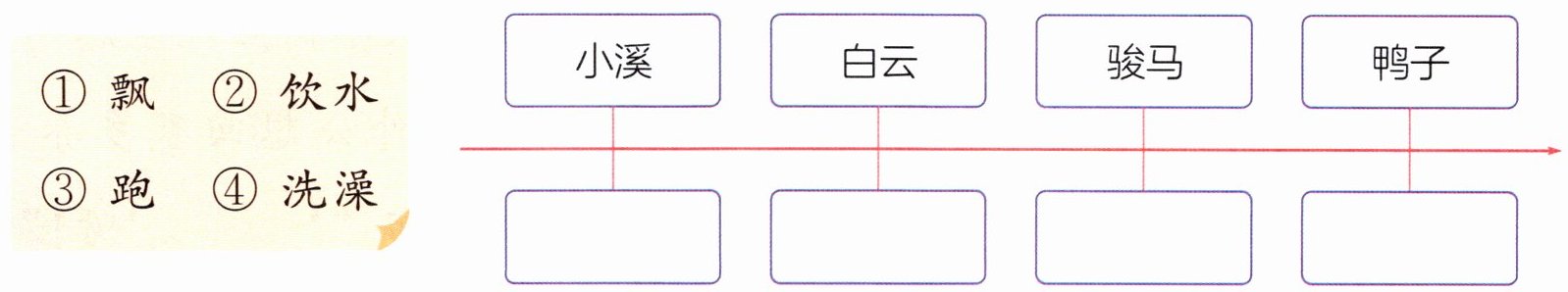 ① 飘 ② 饮水 ③ 跑 ④ 洗澡