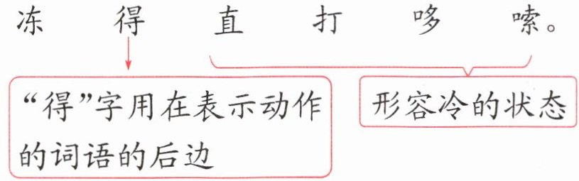 “得”字用在表示动作的词语的后边 形容冷的状态