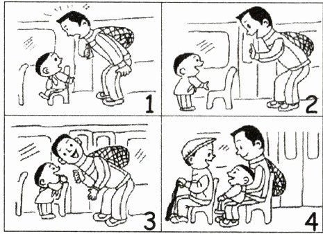 作为新时代祖国建设的接班人,我们要热爱祖国,努力学习,更要在生活中传承革命集体主义精神。观察右边四幅图的内容,图上画的是什么时间?在什么地方?有谁?在干什么?请你写一段话。(可供选择的词语:公交车、大背包、夸奖)(150字左右)