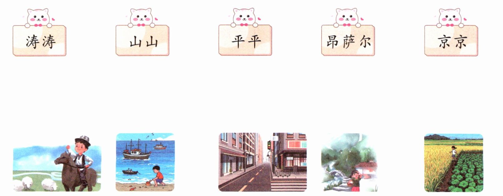 涛涛—第二幅图;山山—第四幅图;平平—第五幅图;昂萨尔—第一幅图;京京—第三幅图