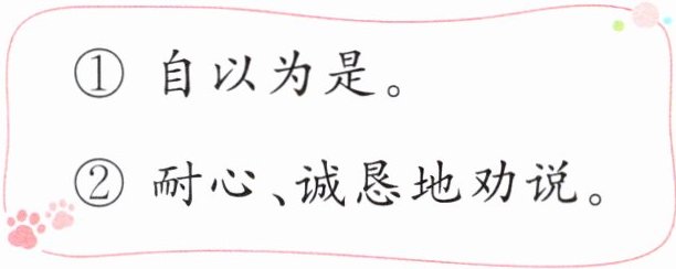 ① 自以为是。 ② 耐心、诚恳地劝说。