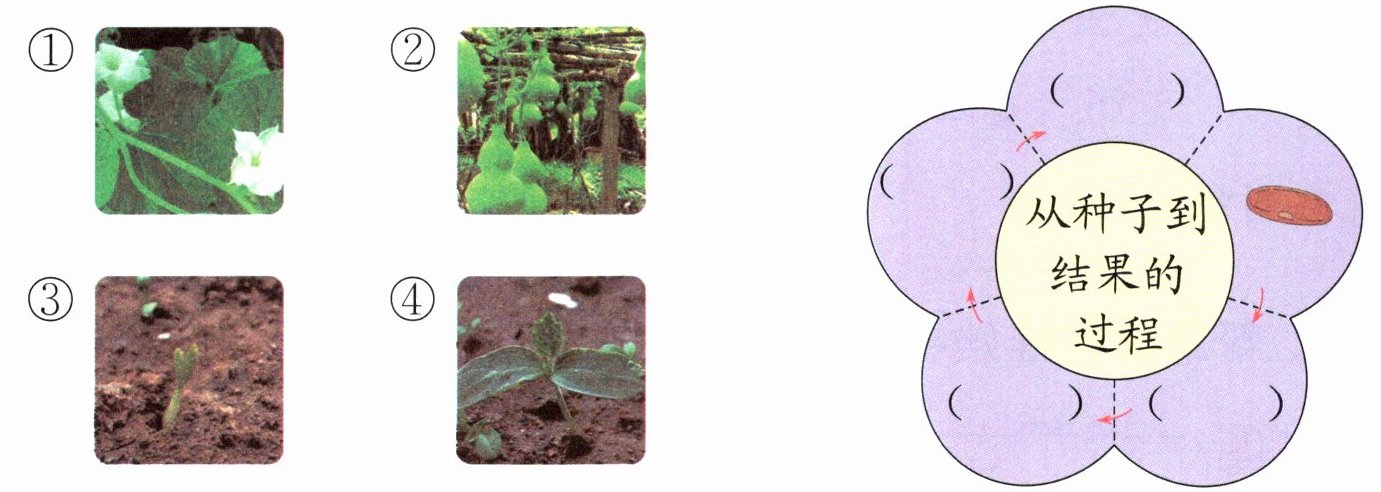 (①图)(②图)(③图)(④图)(花朵形图:从种子到结果的过程及周围括号)