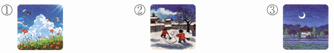 三、借助图( ),我们能理解“寒冬腊月”的意思;借助图( ),我们能理解“夜幕降临”的意思。(填序号)