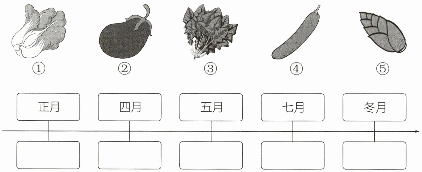 2. (思维导图)读儿歌,按时间顺序给下面的蔬菜排排序。(填序号)(5分)