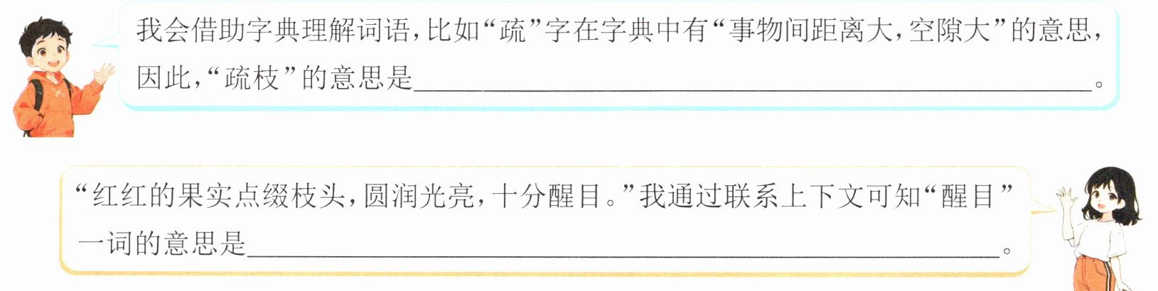 2. (阅读要素)小语和小文尝试用学过的方法理解文中词语,请帮忙补全对话。