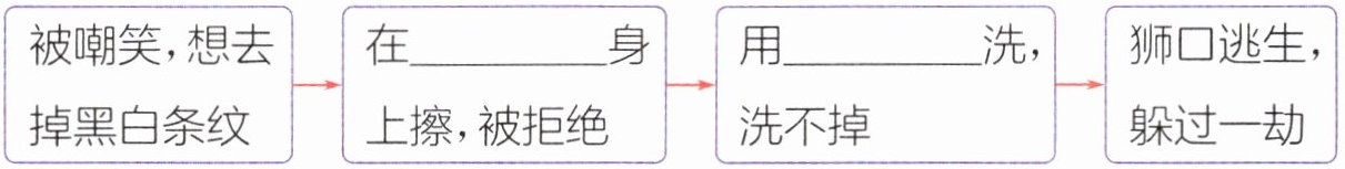 2. (思维导图)根据提示,把小斑马的经历补充完整。