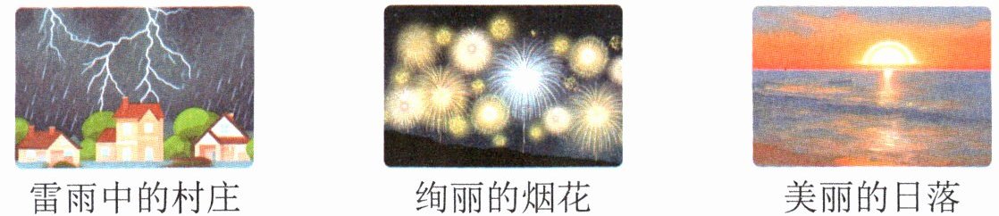 句子加工 四、从下面的图片中任选一种情境,用上两三个给出的词语,写几句话描绘画面。