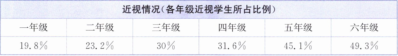 | 近视情况(各年级近视学生所占比例) | | | | | |