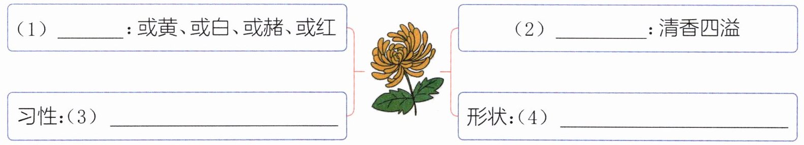 3. (思维导图)作者从哪些方面描写了菊花?请将下面的思维导图补全并完成练习。
