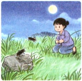 ③ 幼时,我很爱捉虫。在朦胧的月光下,随处可以听见各种虫子的鸣唱,唱得最动听的肯定是蛐蛐了。我会轻轻地走入草堆,脚步轻盈得活像一只猫。翻开一块块大石头,我便看到披着黑色“大衣”的蛐蛐在那里又蹦又跳。我猛地向前一跳,双手一捂,小心翼翼地将蛐蛐提起,然后借着月光,跟邻居小伙伴开心地斗蛐蛐。待我玩累时,月亮也已经悄悄地到云朵里歇息,外婆牵着我的手带我回家。