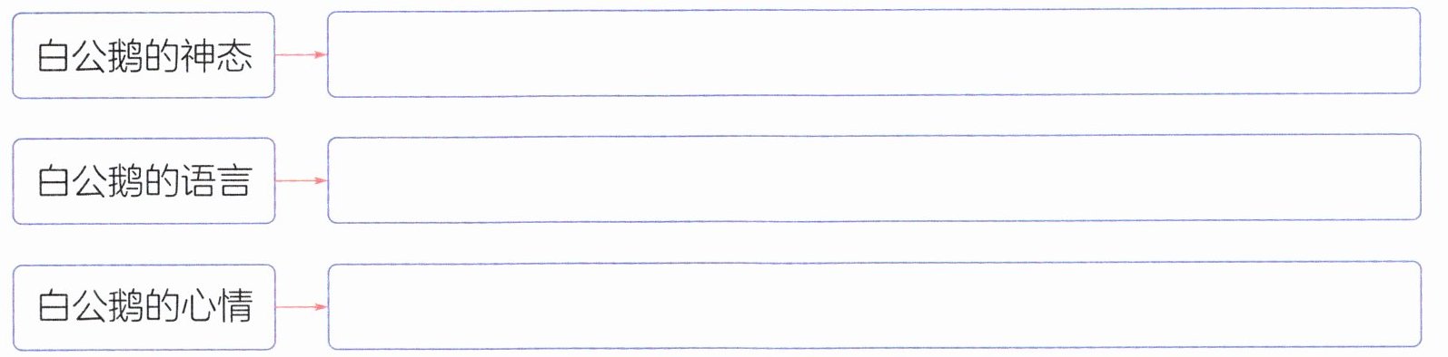 2. 阅读画“____”的句子,试着想一想白公鹅此时的神态、语言、心情。