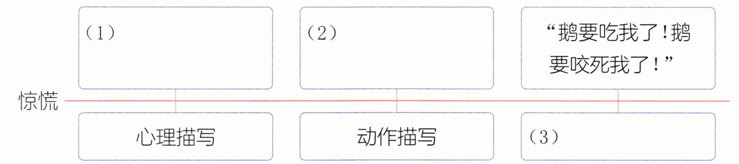 1.(思维导图)片段是怎么表现“我”被鹅追赶时的惊慌的?完成思维导图。
