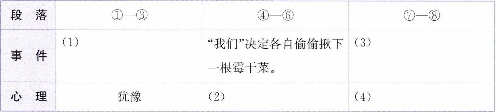 | 事件 | (1) | “我们”决定各自偷偷揪下一根霉干菜。 | (3) |