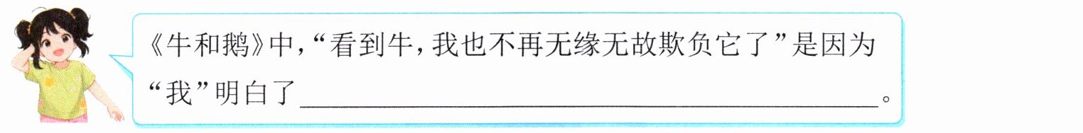 《牛和鹅》中,“看到牛,我也不再无缘无故欺负它了”是因为“我”明白了______。
