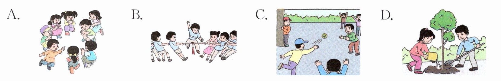 D 解析:观察图片,两个小孩在种树,属于一次活动而非游戏,场景不符合习作要求。