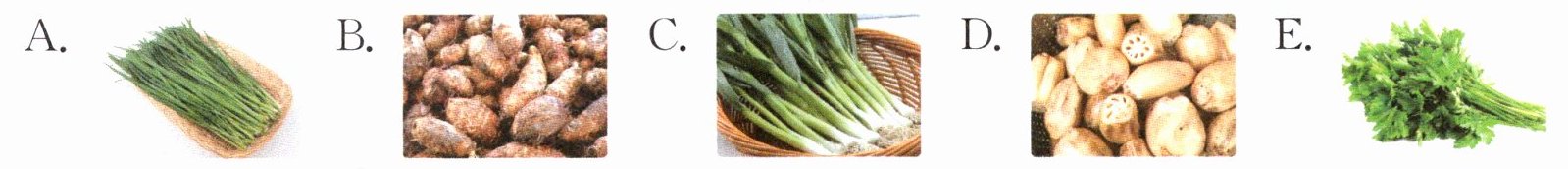 2. 请你结合菜谱将买来的蔬菜摆放好。(填字母)