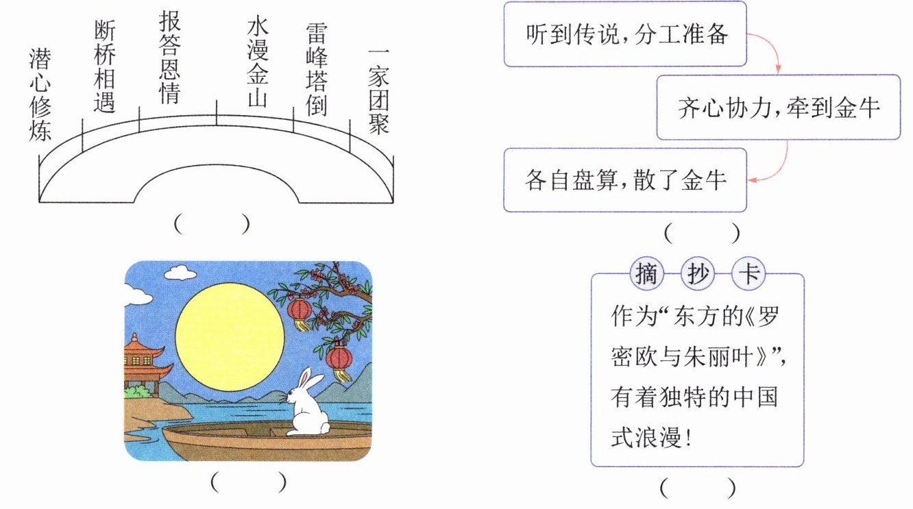 五、小语读了许多民间故事,并用画情节图、做阅读摘抄卡、画插图、摘抄他人评论等方式加以记录。请你猜猜小语读了哪些民间故事吧!(填序号)